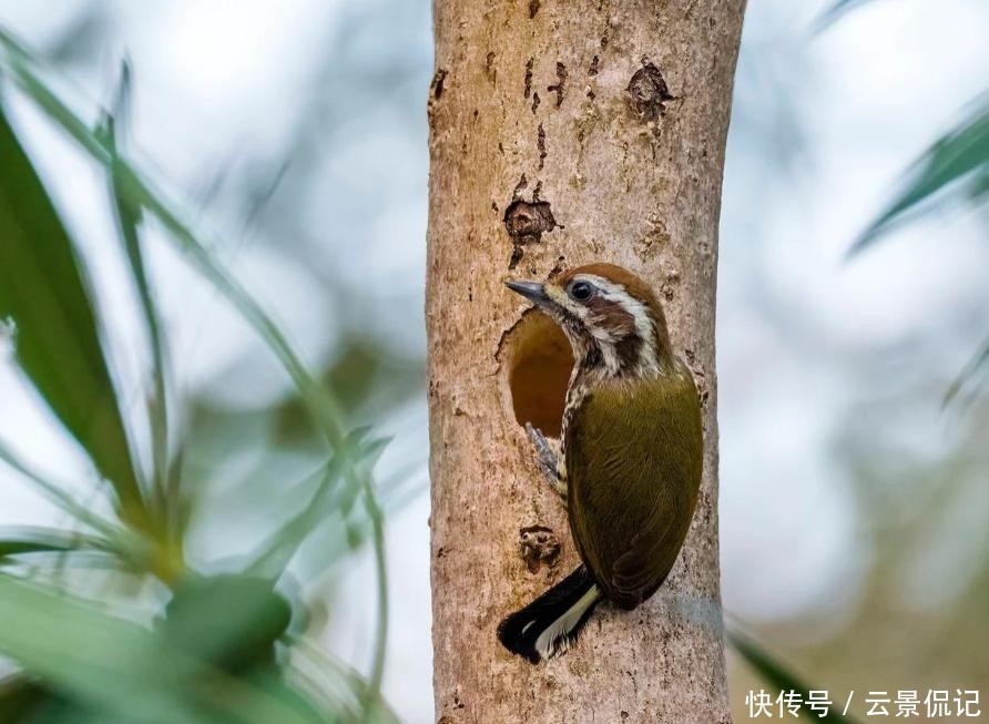 那只橄榄绿色的小鸟像块会动的碧玉,垂直吸附在树皮上,用尖喙笃笃啄着,和她印象里的麻雀截然不同。